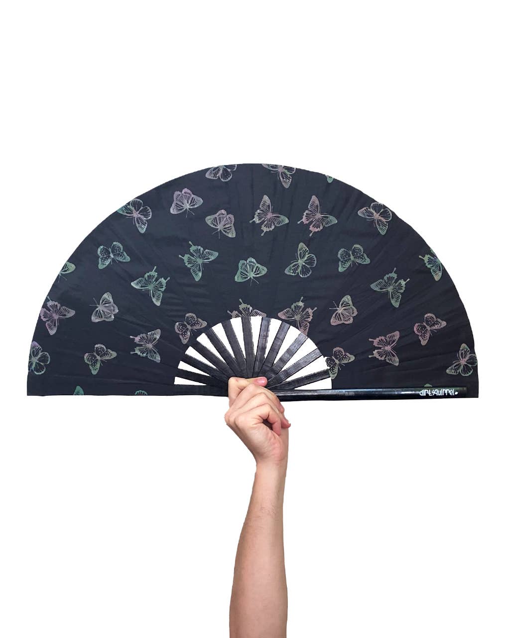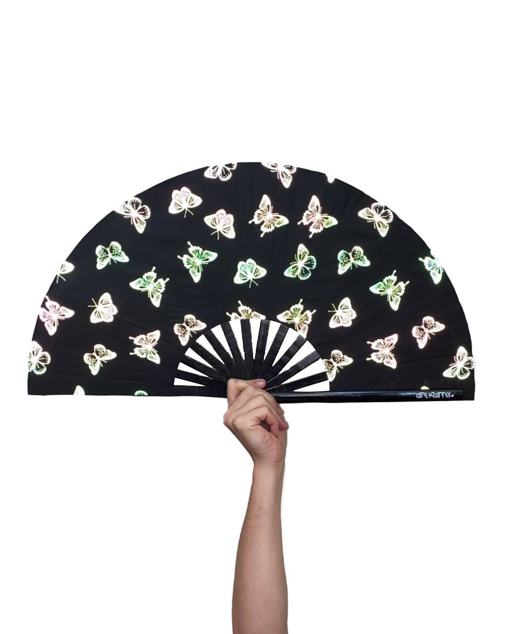 Express yourself with this loud, durable and fortified hand fan by Dirt Squirrel. This fan is made from sturdy bamboo and nylon fabric that results in a loud “clack” when flicked open. The perfect accessory for keeping cool when you’re breaking a sweat, soaking in sun rays, dancing, relaxing or displaying main character energy. Live your best life and be the life of the party with this signature Dirt Squirrel fan!
