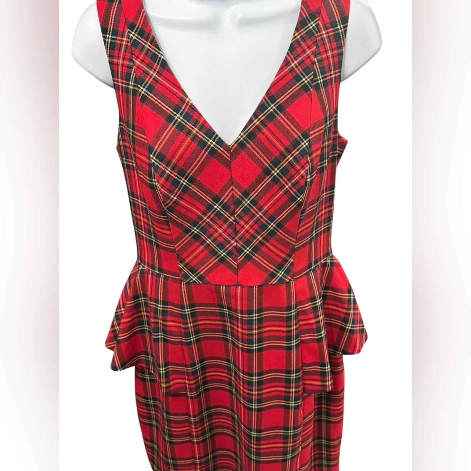 Awesome peplum dress, plaid/tartan pattern. Lined with a cute black lace trimmed slip. Zips up the back. Size 6 17.5 PTP